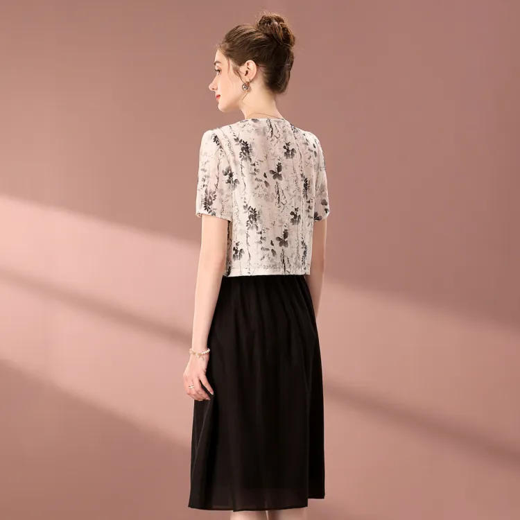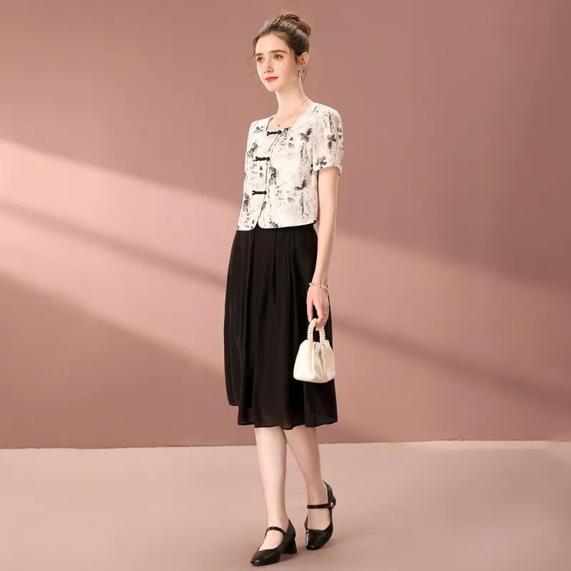 FENHONGMALI 블랙 화이트 여성 투피스 스커트 세트
