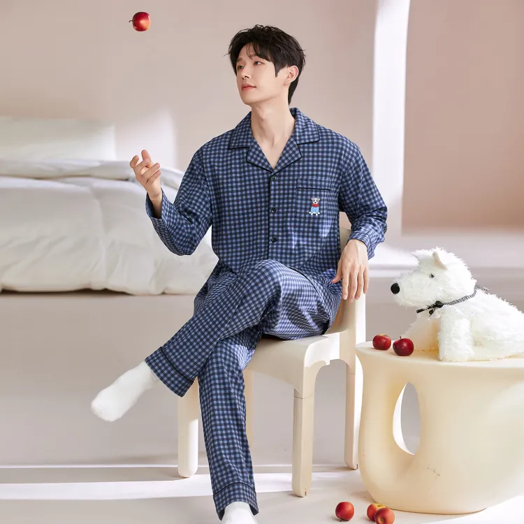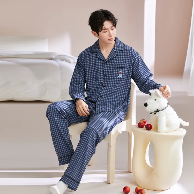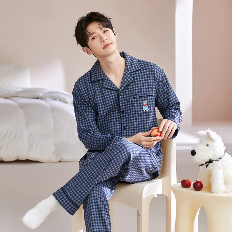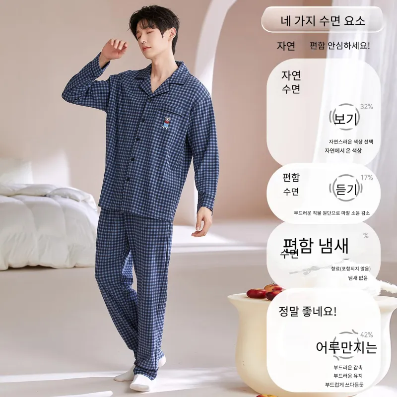 FENTENGCARE 네이비 블루 남성 파자마 세트