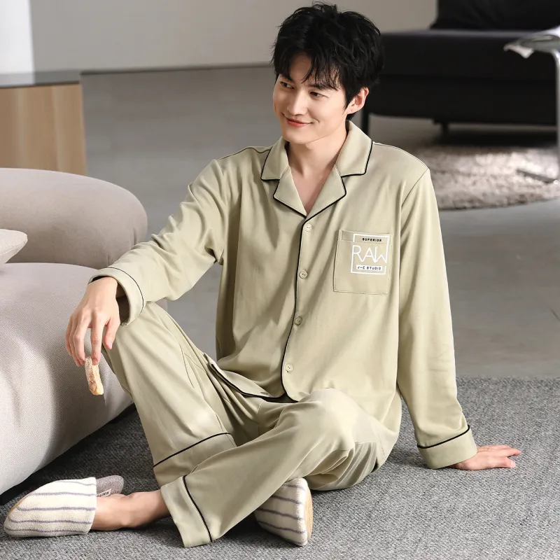 FENTENGCARE 카키 남성 파자마 세트 - POIZON