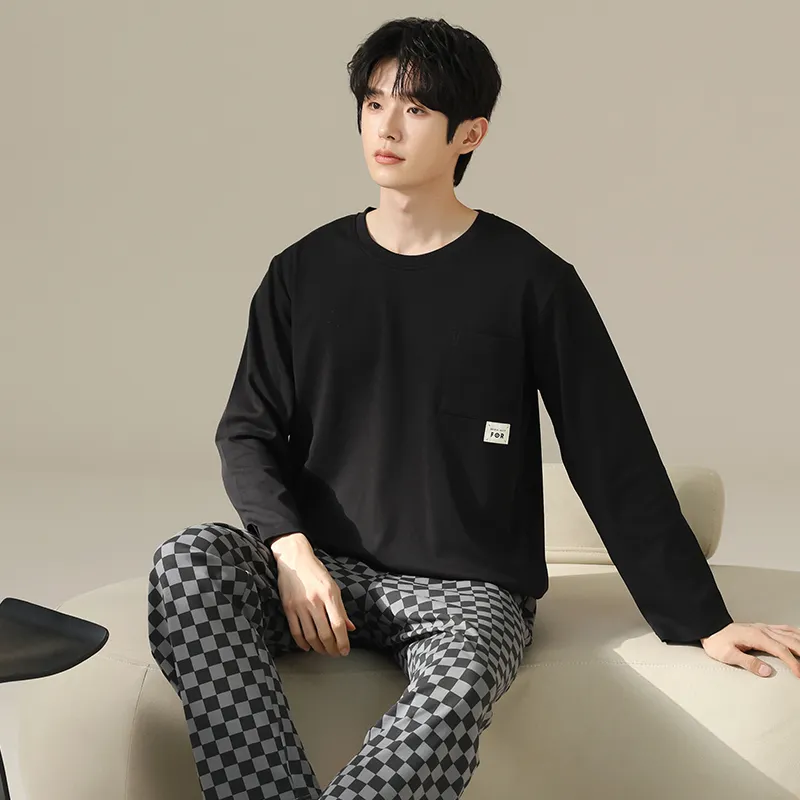 FENTENGCARE 그레이 남성 파자마 세트 - POIZON