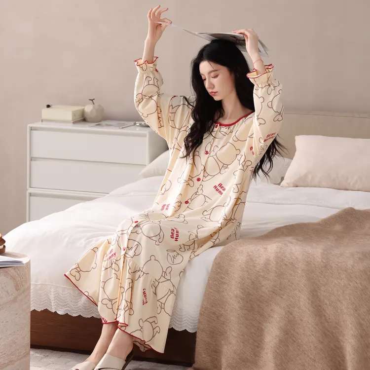 FENTENGCARE 애프리콧 여성 나이트 가운