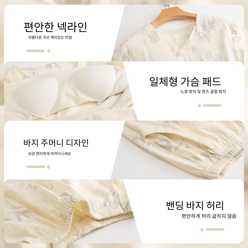 FENTENGCARE 화이트 여성 파자마 세트