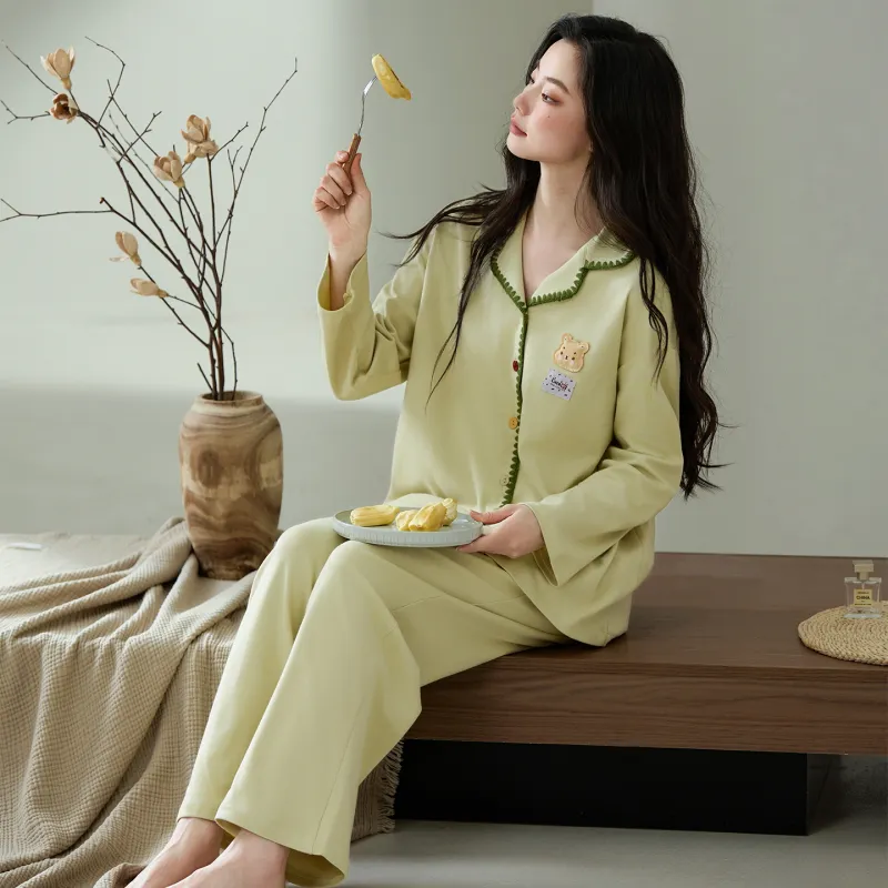 FENTENGCARE 그린 여성 파자마 세트