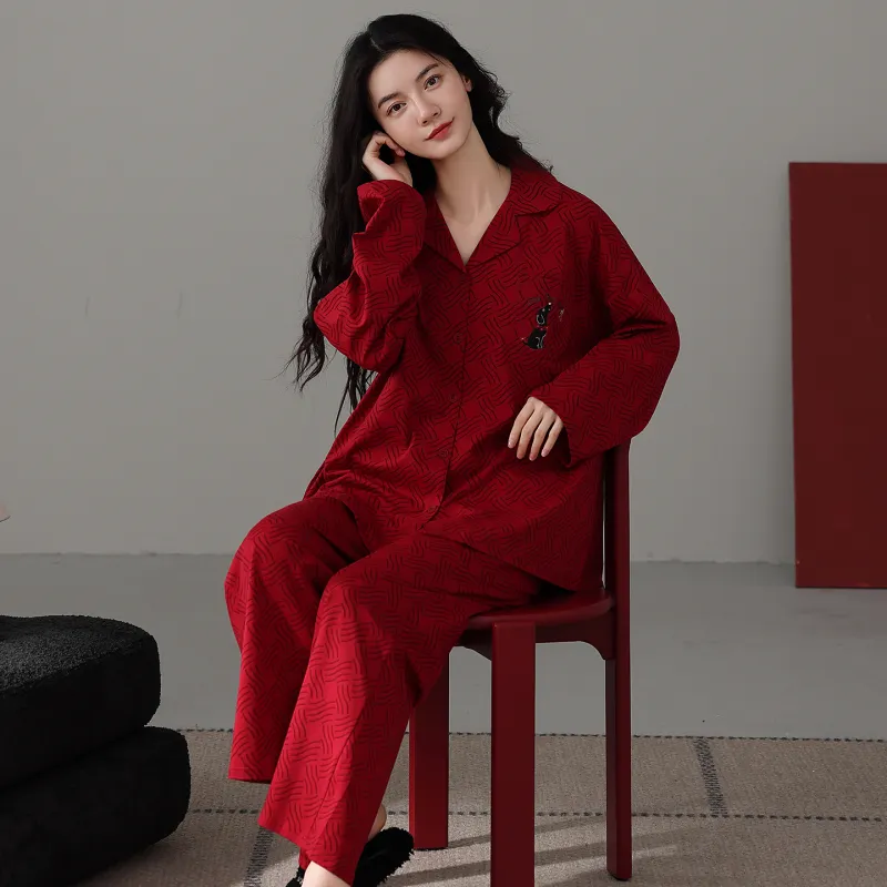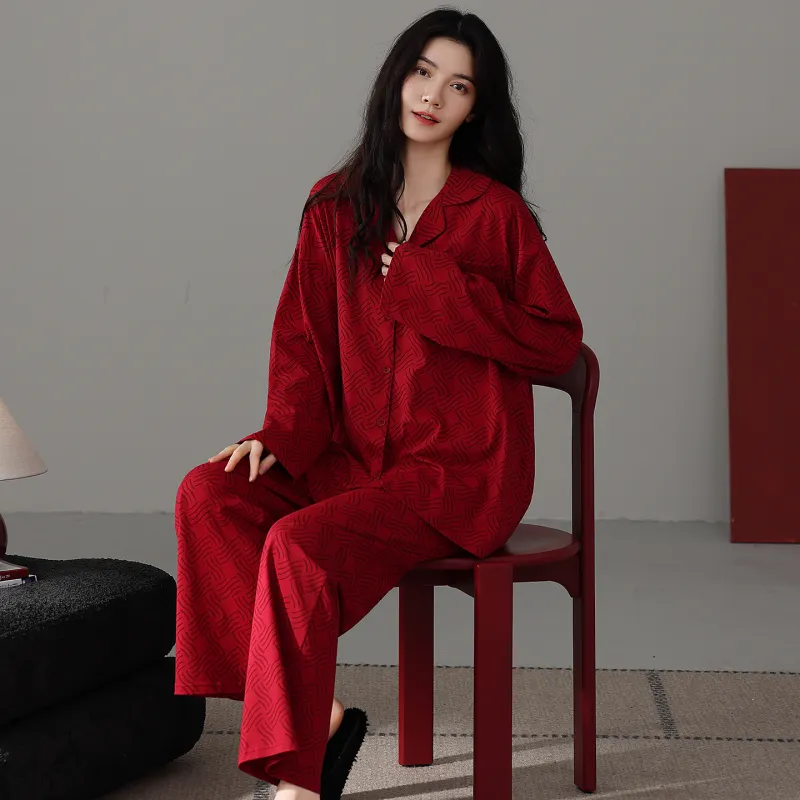 FENTENGCARE 레드 여성 파자마 세트