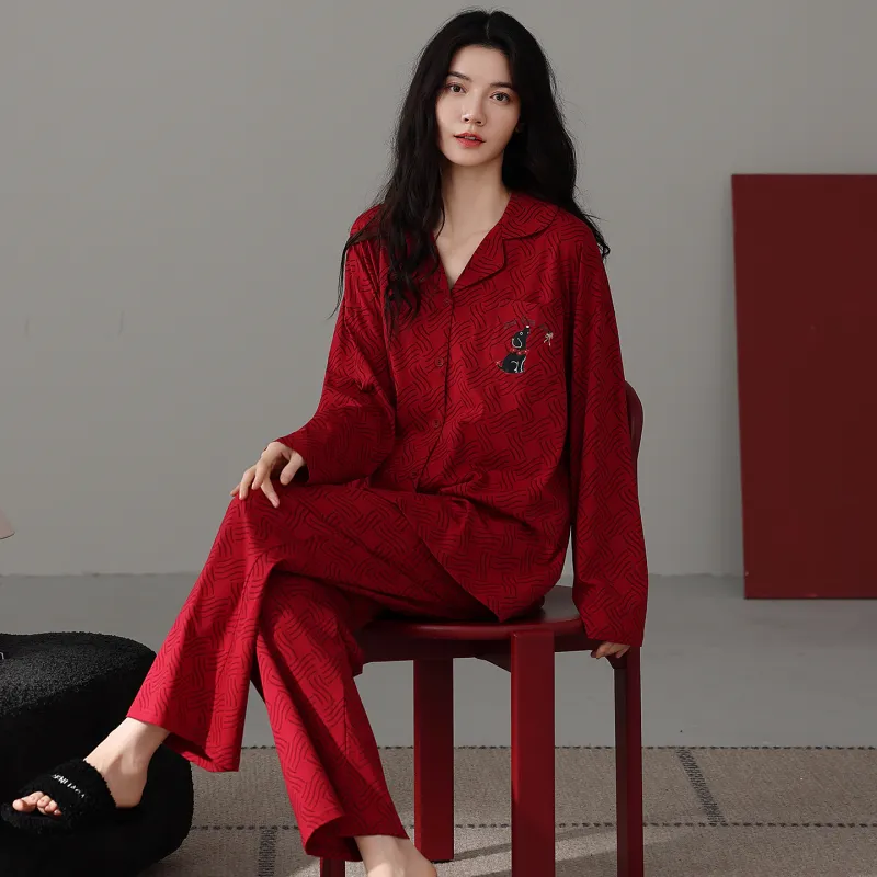 FENTENGCARE 레드 여성 파자마 세트 - POIZON