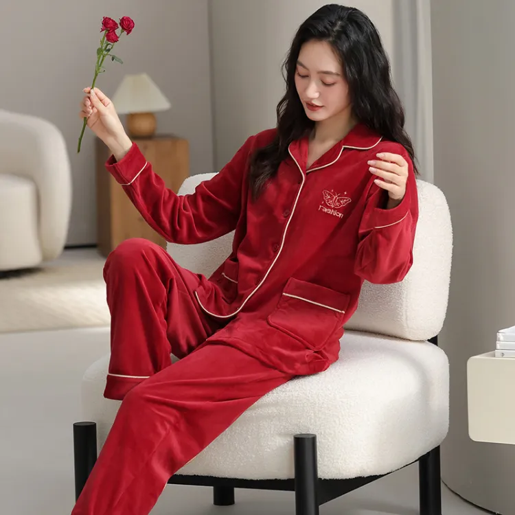 FENTENGCARE 레드 여성 파자마 세트 - POIZON