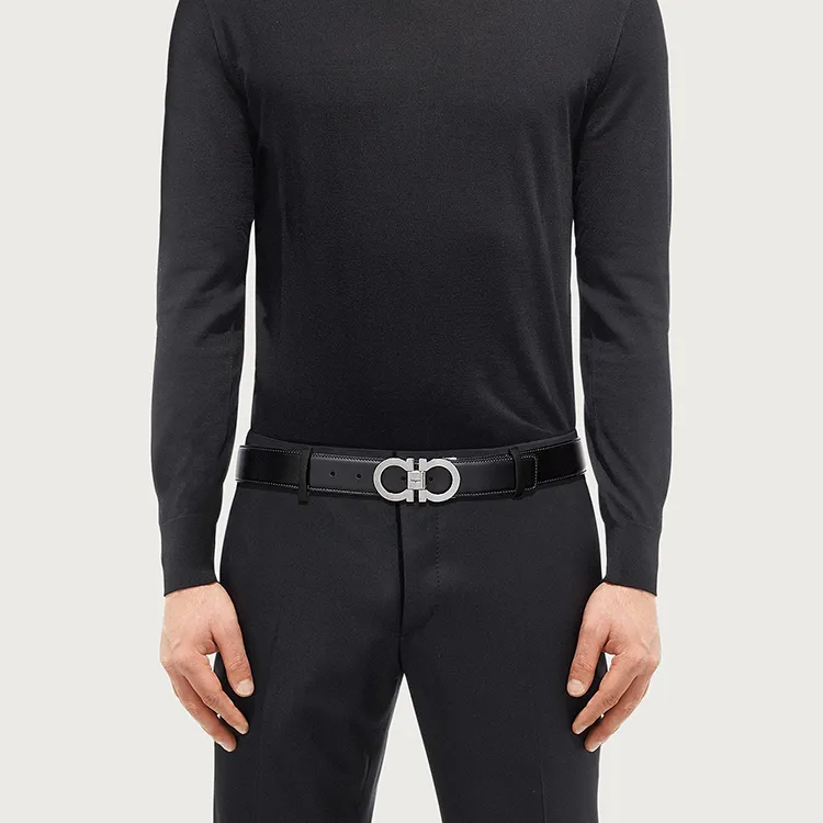 페라가모 리버시블 어드저스터블 카프스킨 레더 간치니 벨트 블랙 어번 - POIZON