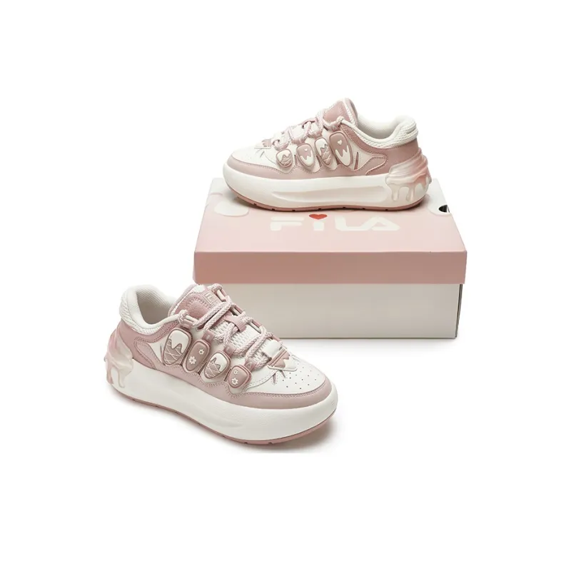 FILA 캐럿 2 로우탑 스케이트보드 신발 여성 밀크 화이트/로즈 스모크 핑크
