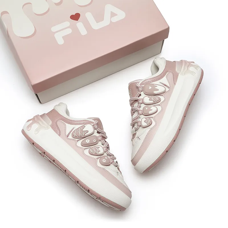 FILA 캐럿 2 로우탑 스케이트보드 신발 여성 밀크 화이트/로즈 스모크 핑크 - POIZON