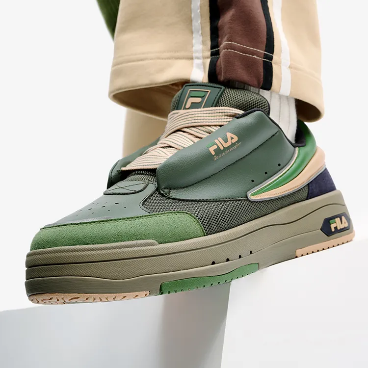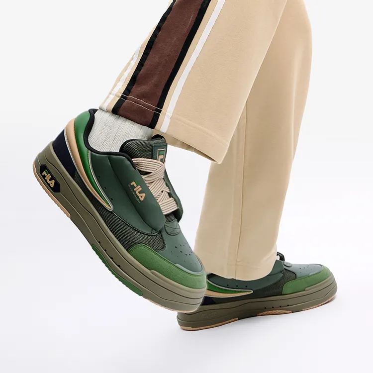 FILA 믹스 타임 내마모성 키높이 로우탑 스케이트보드 신발 남성 블랙 그린 옐로우 - POIZON