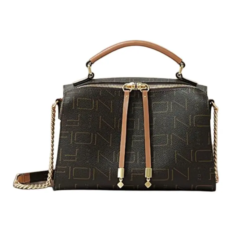 FION 인조 가죽 핸드백, 숄더 백, 크로스백 M 여성 다크 커피 브라운 - POIZON