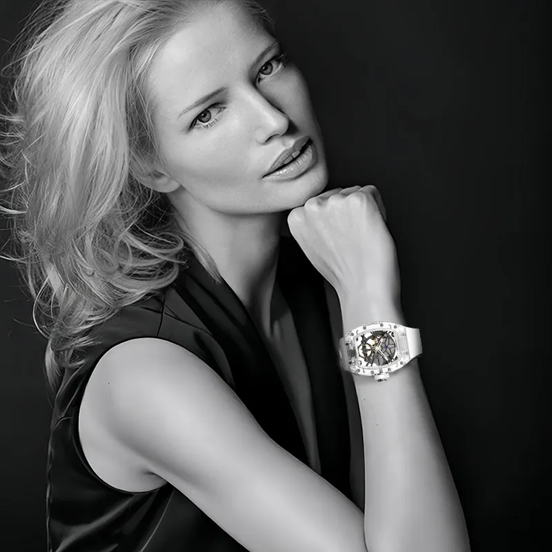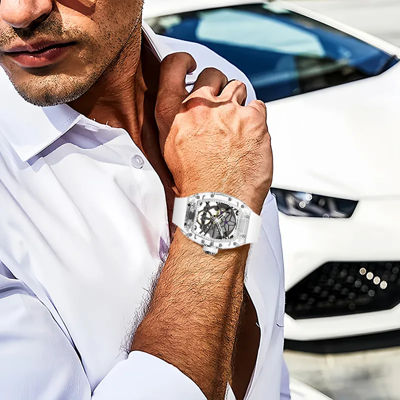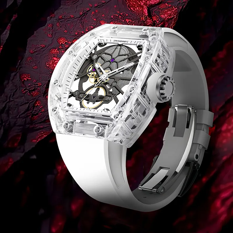 FR 메커니컬 무브먼트 친환경 플루오로엘라스토머 스트랩 중국 시계 남녀공용 화이트 다이얼