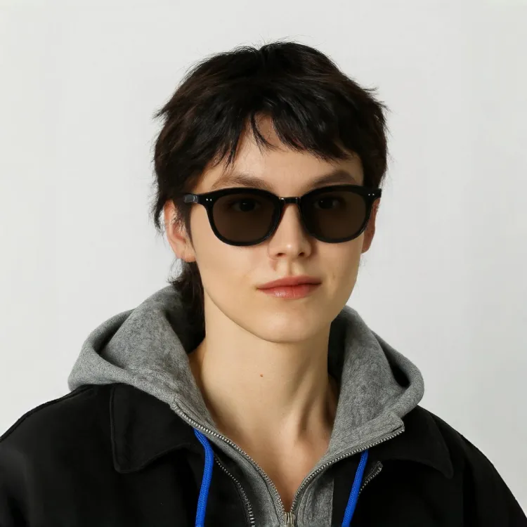 젠틀 몬스터 플레이트 프레임 라운드 선글라스 남녀공용 블랙 - POIZON