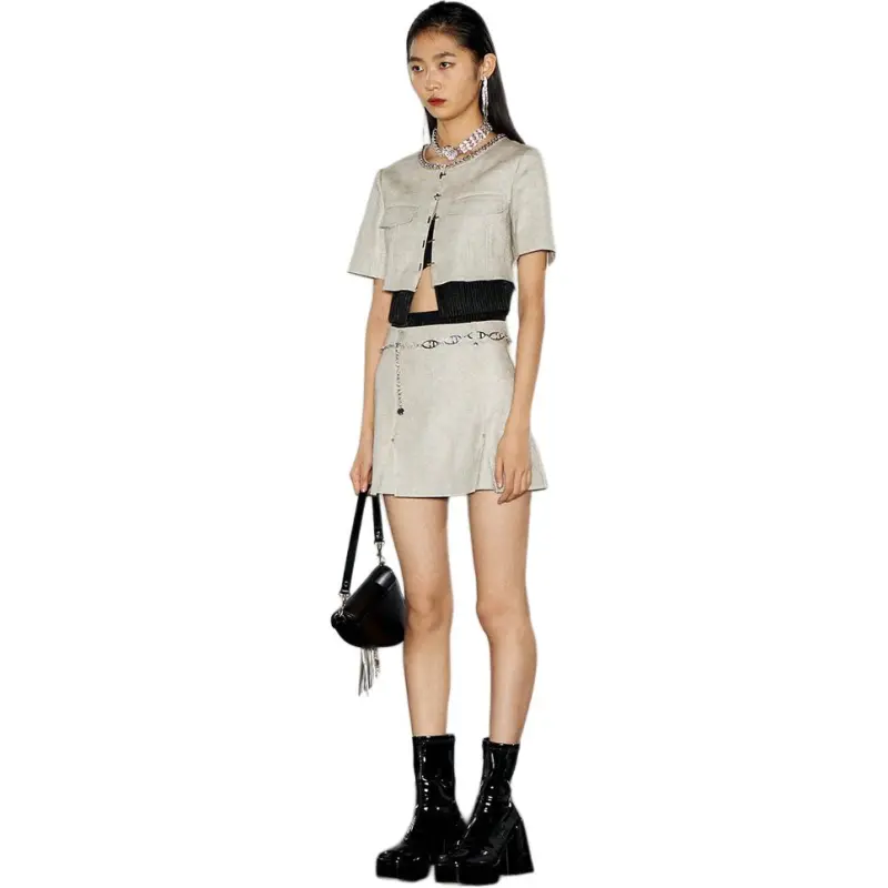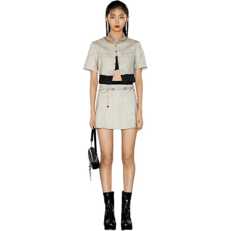 GIMING 샴페인+블랙 여성 캐주얼 숏 스커트 - POIZON