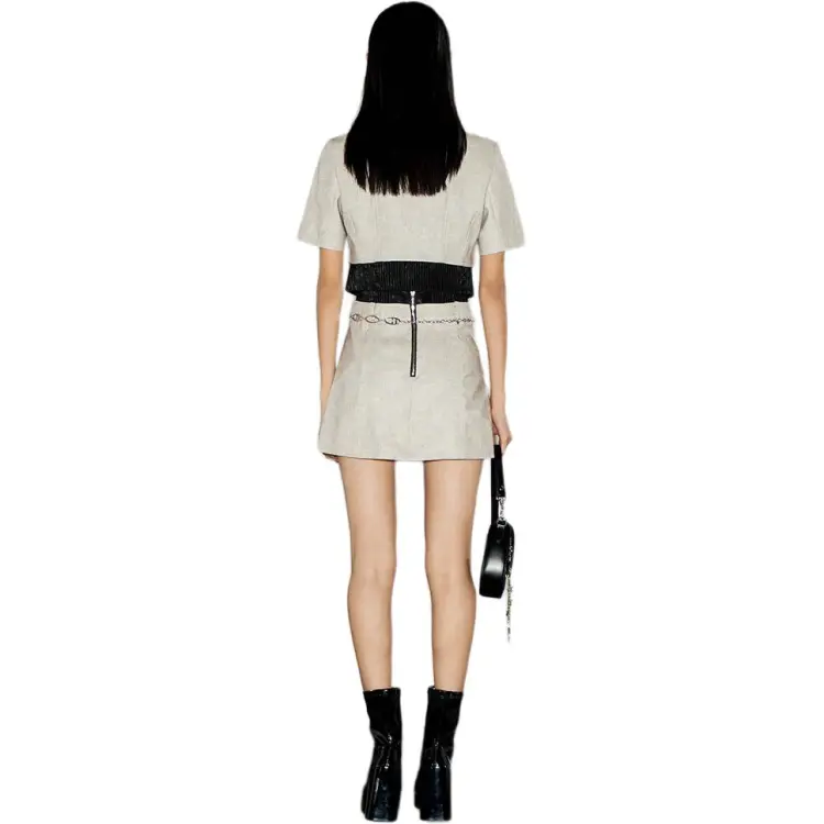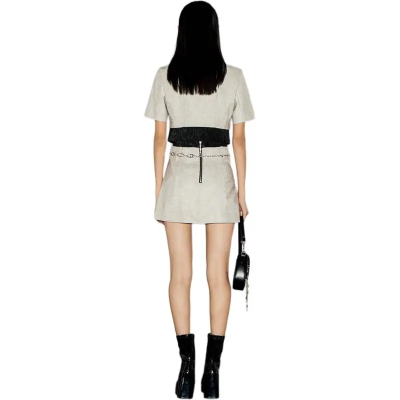 GIMING 샴페인+블랙 여성 캐주얼 숏 스커트