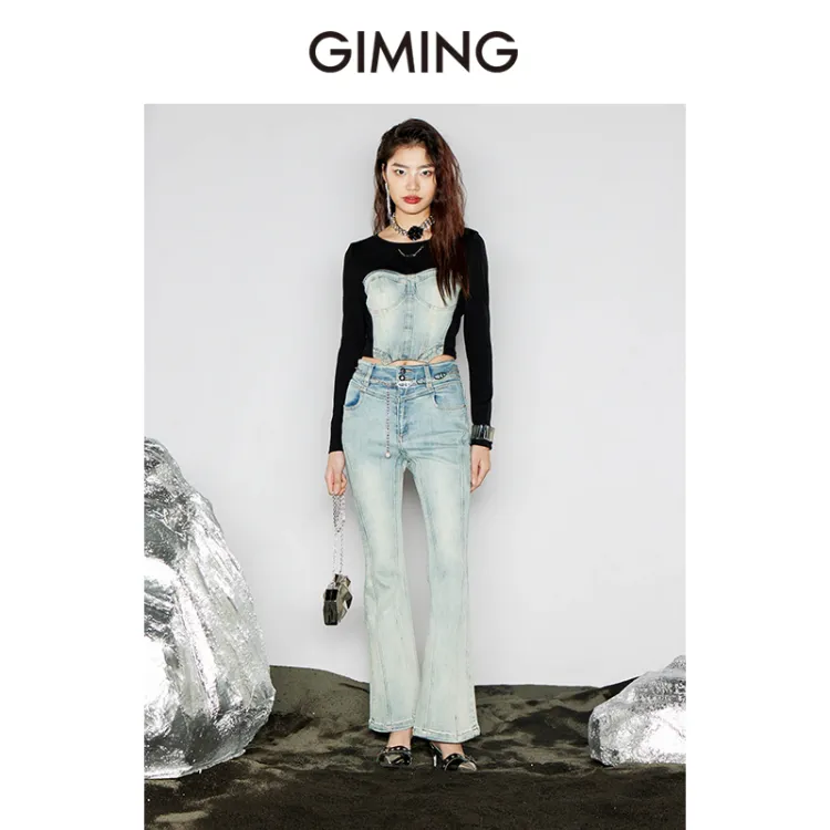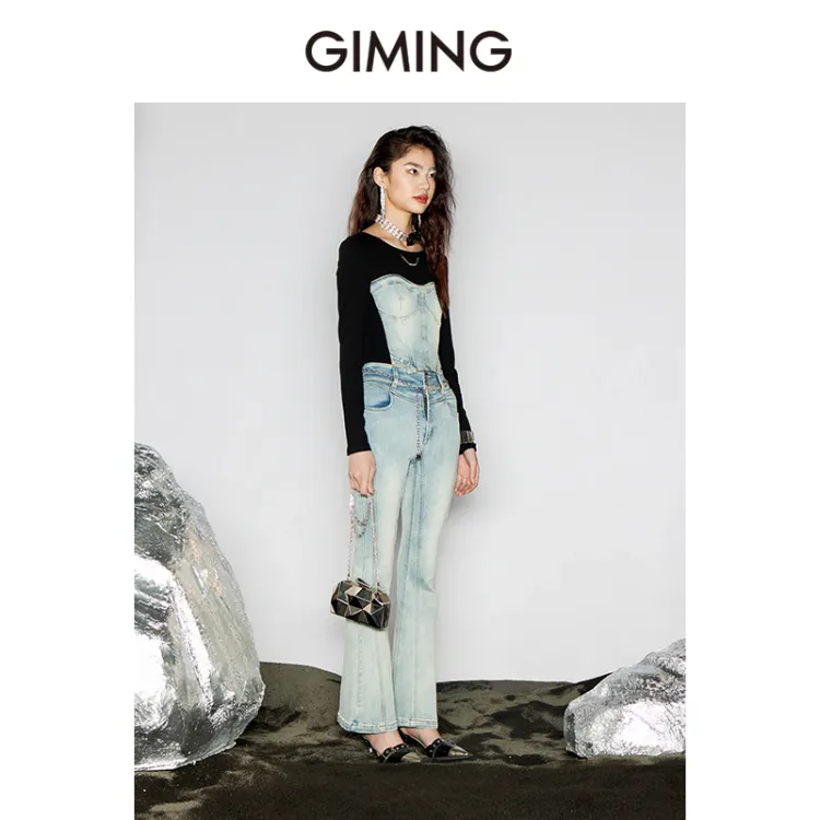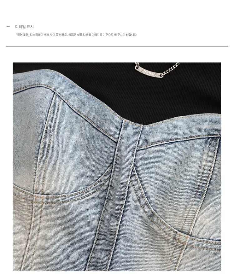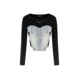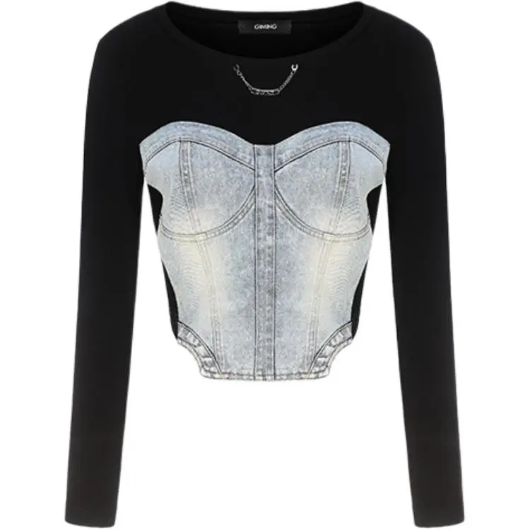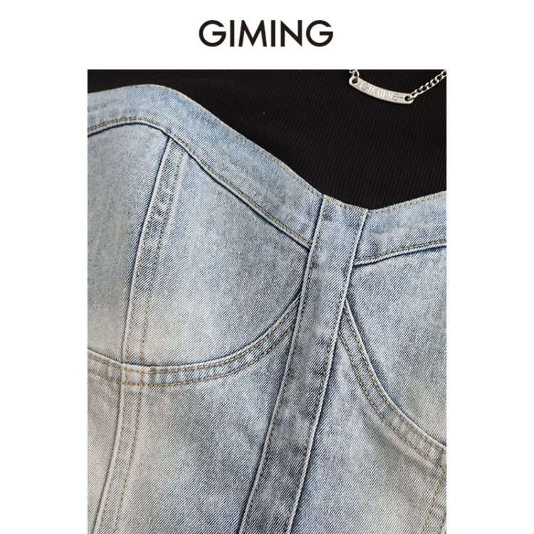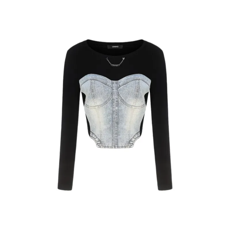 GIMING 블루+블랙 여성 크롭 탑 - POIZON