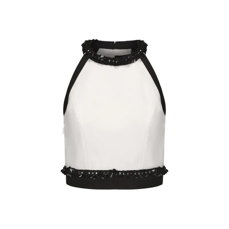 GIMING 화이트+블랙 여성 크롭 탑 - POIZON