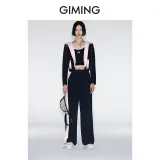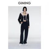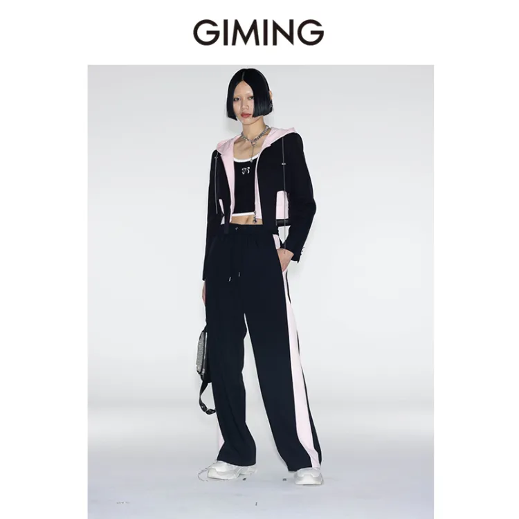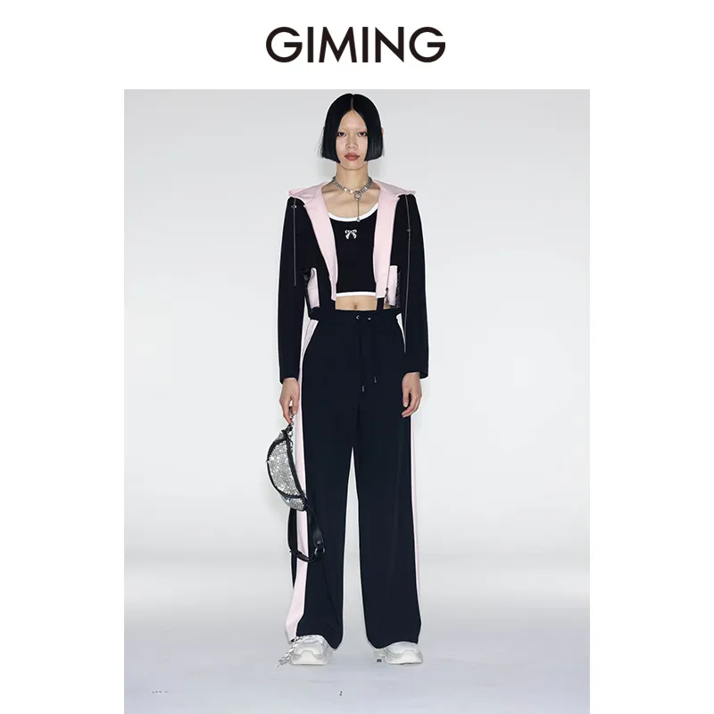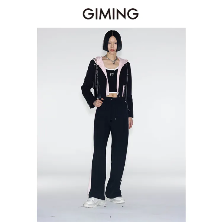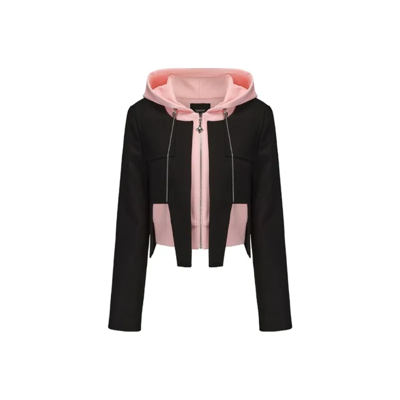 GIMING 블랙+핑크 여성 크롭 코트 - POIZON