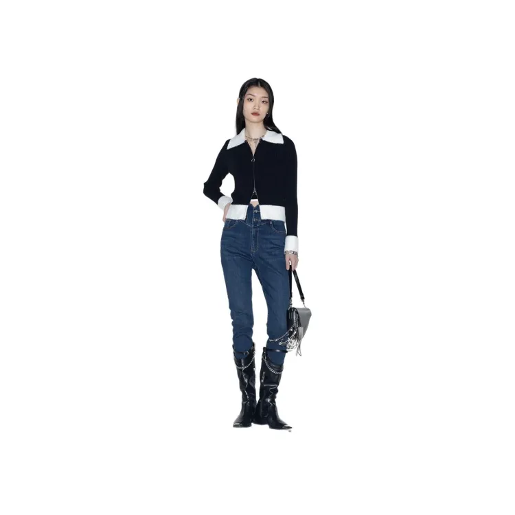 GIMING 블랙+화이트 여성 니트웨어 - POIZON