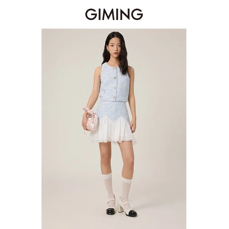 GIMING 블루 화이트 여성 조끼 - POIZON