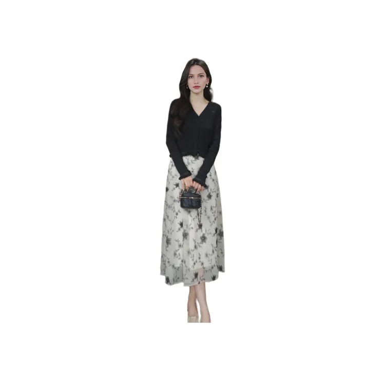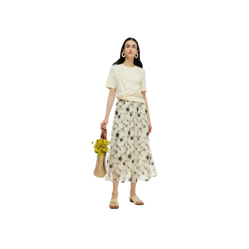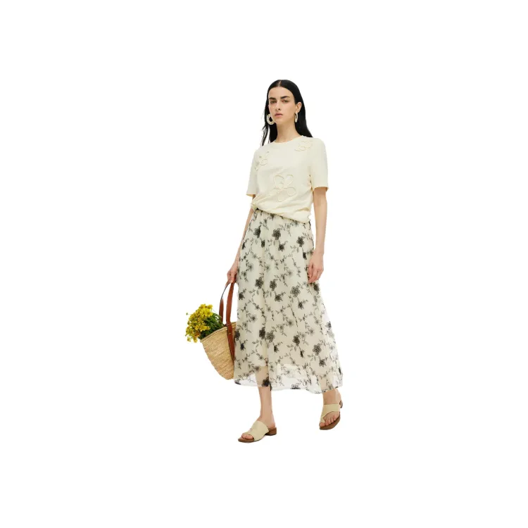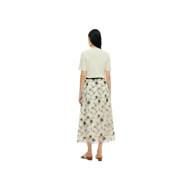 고엘리아 캐주얼 롱 기장 스커트 여성 애프리콧 바닥층 자수 - POIZON