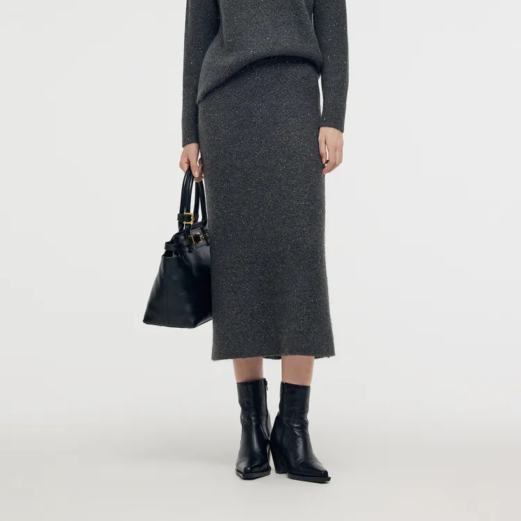 GOELIA 48B 다크그레이 여성 니트 롱 스커트 - POIZON