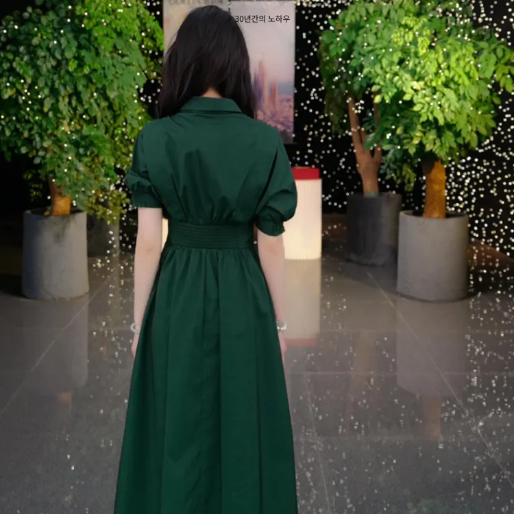 GOELIA 91G 잉크 그린 여성 반팔 원피스