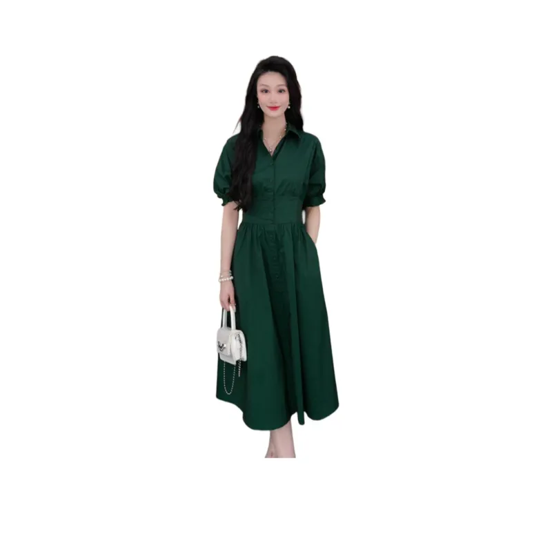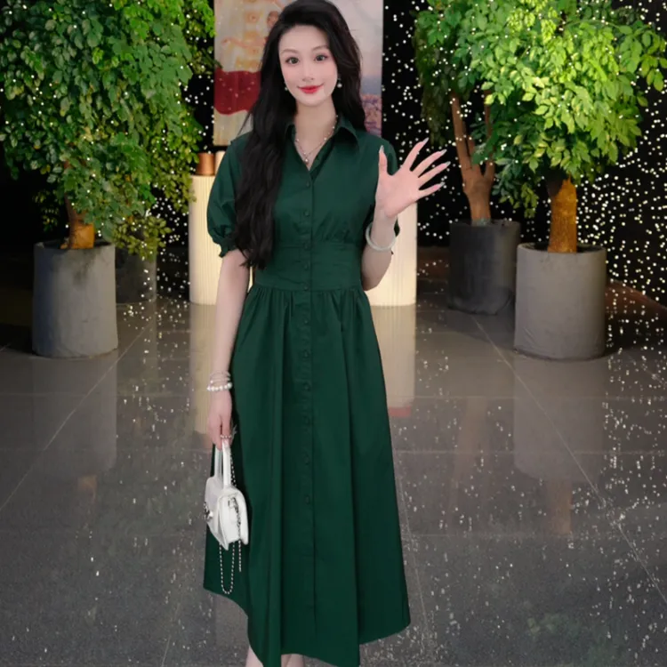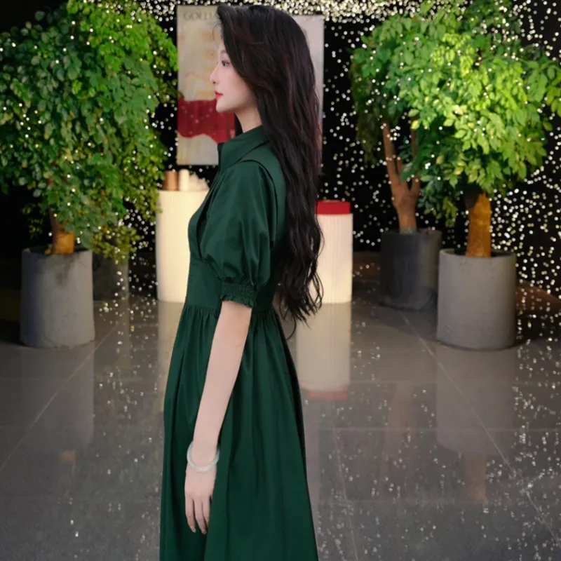 GOELIA 91G 잉크 그린 여성 반팔 원피스 - POIZON