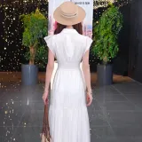 GOELIA 07W 베이지 여성 반팔 원피스 - POIZON