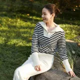 고엘리아 스웨터 여성 14S 블랙 화이트 스트라이프 패턴