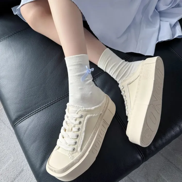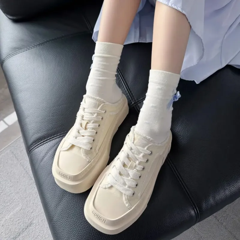 GONGJI 공유 트랙 미끄럼방지, 내마모성, 통기성 좋은 로우탑 캐주얼화 여성 가드니아 화이트