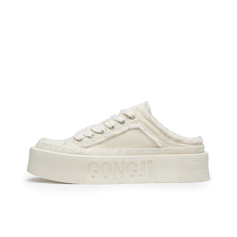 GONGJI 공유 트랙 미끄럼방지, 내마모성, 통기성 좋은 로우탑 캐주얼화 여성 가드니아 화이트 - POIZON
