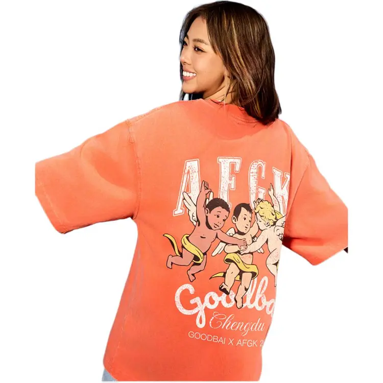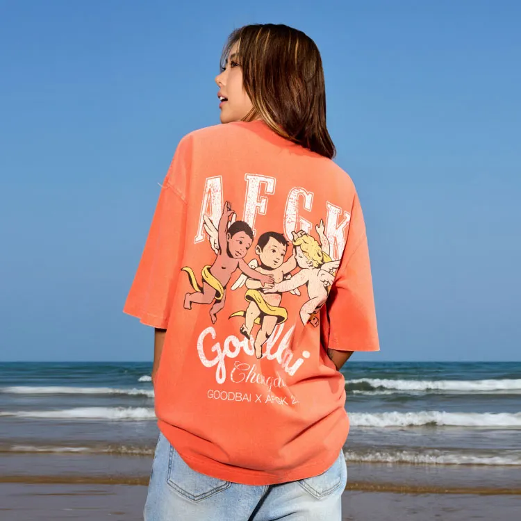 AFGK GOODBAI 협업 모델 오렌지 레드 도시 한정 남녀공용 티셔츠