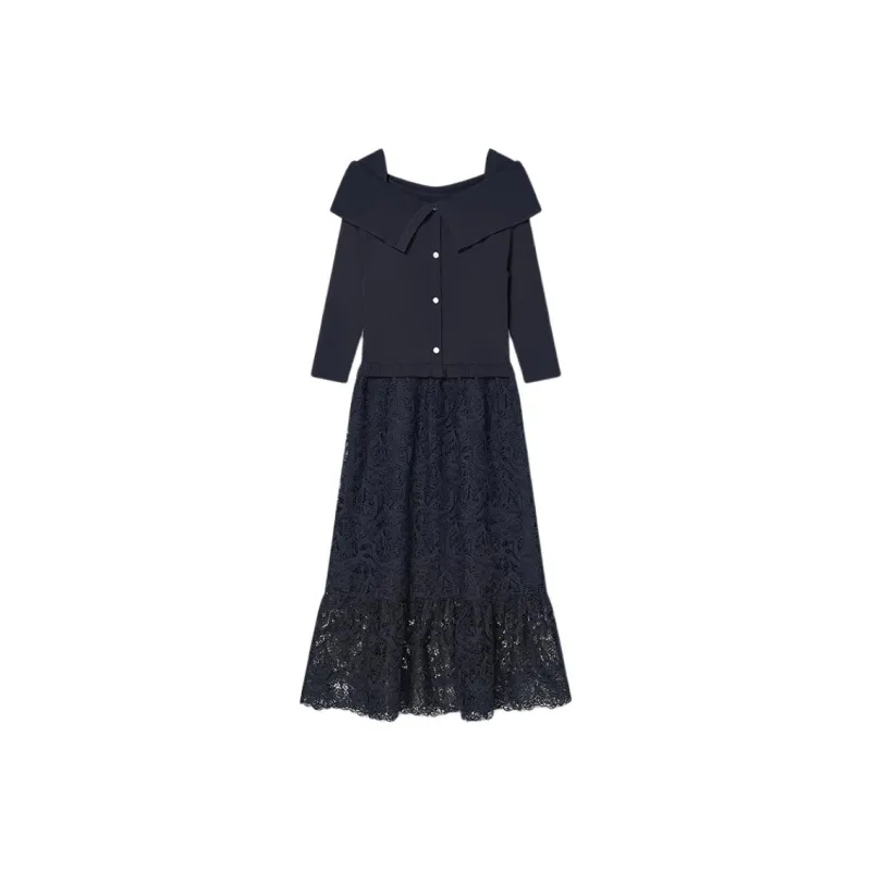 YINER GoodLand 네이비 블루 여성 긴팔 원피스 - POIZON