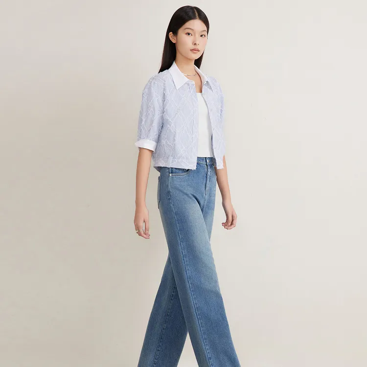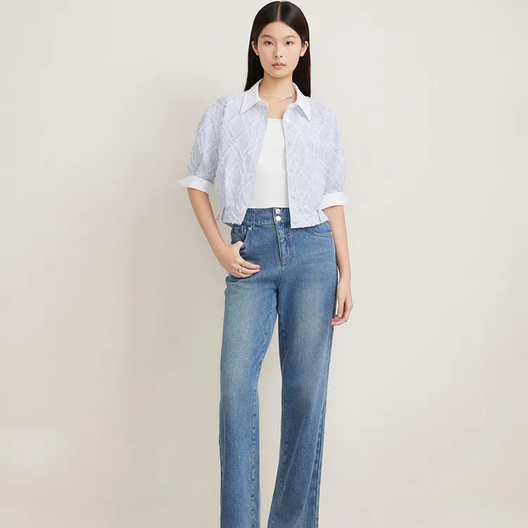YINER GoodLand 블루 화이트 여성 셔츠 - POIZON