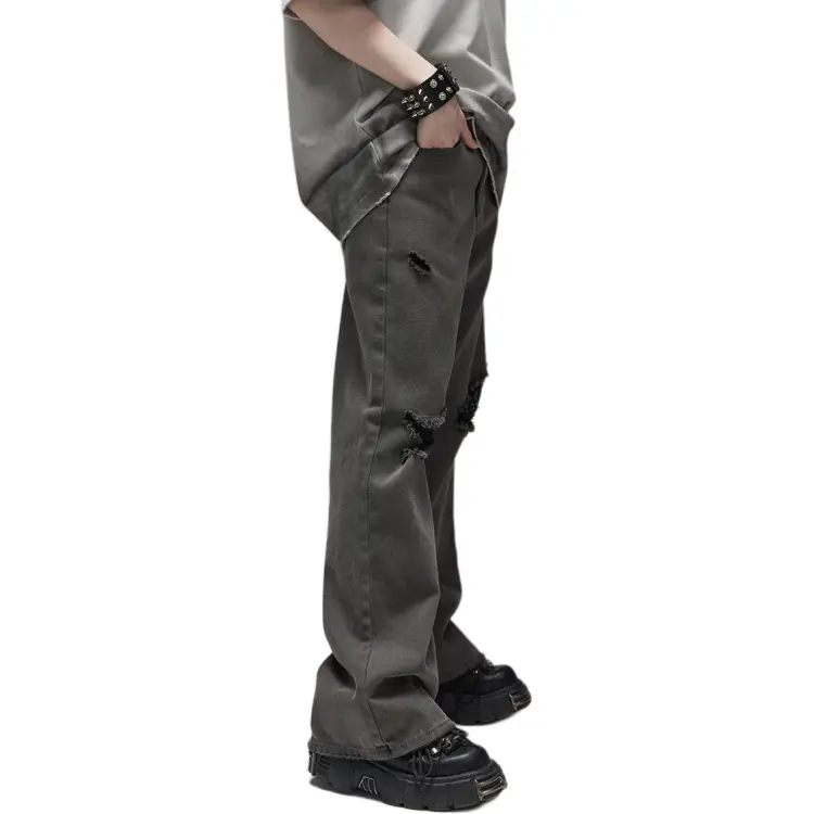 GOST 워시드 블랙 그레이 남녀공용 청바지