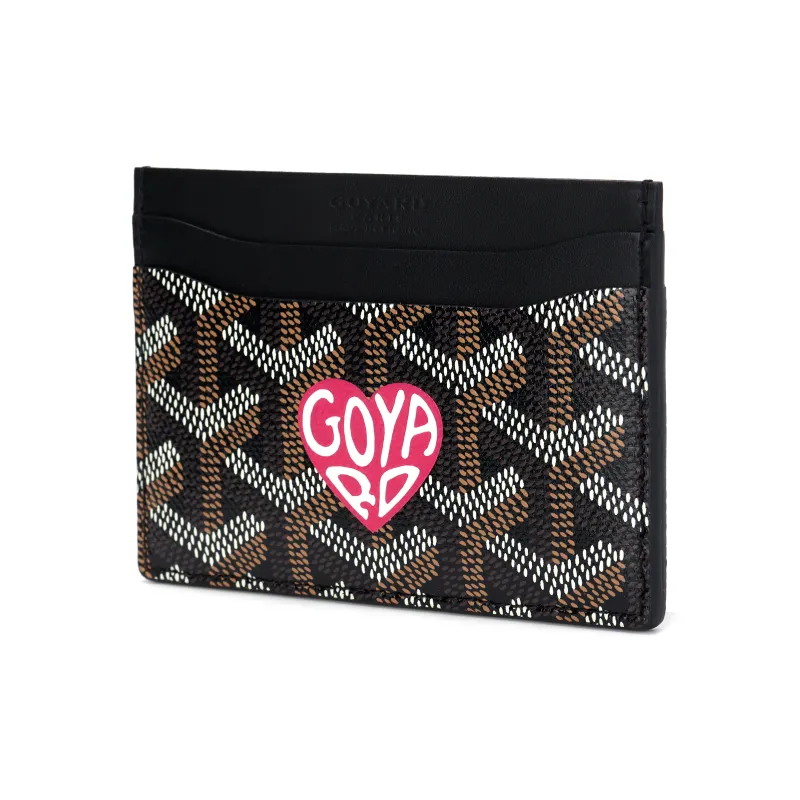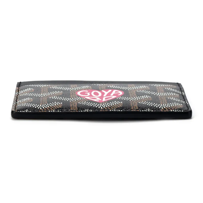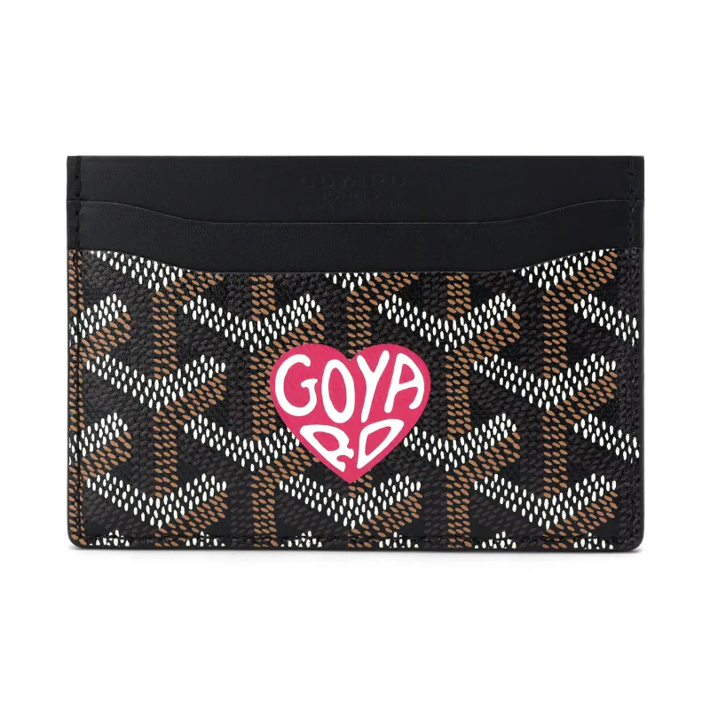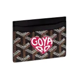 고야드 캔버스+가죽 카드 지갑 남녀공용 블랙 & 피치 레드 스몰 하트 - POIZON