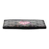 고야드 캔버스+가죽 카드 지갑 남녀공용 블랙 & 피치 레드 스몰 하트