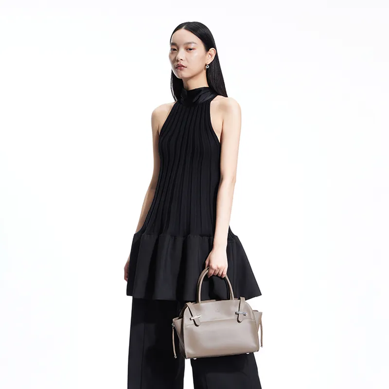 그로토 고품질 송아지 가죽 내추럴 그레인 텍스처 로터스 가방, 핸드백, 숄더 백, 크로스백 S 남녀공용 클래식 블랙/엘리펀트 그레이 - POIZON