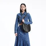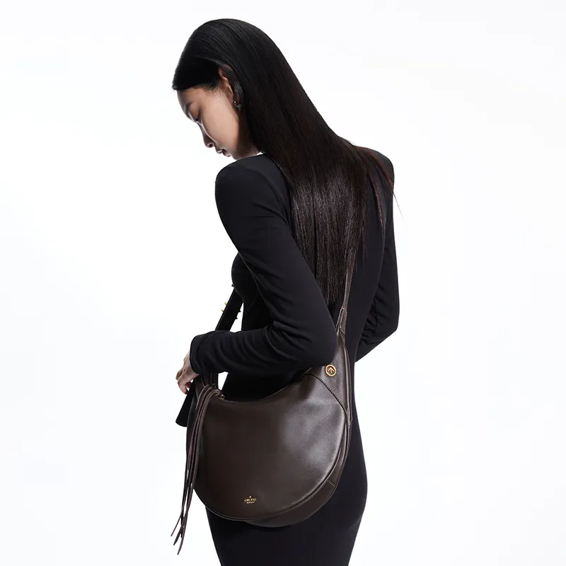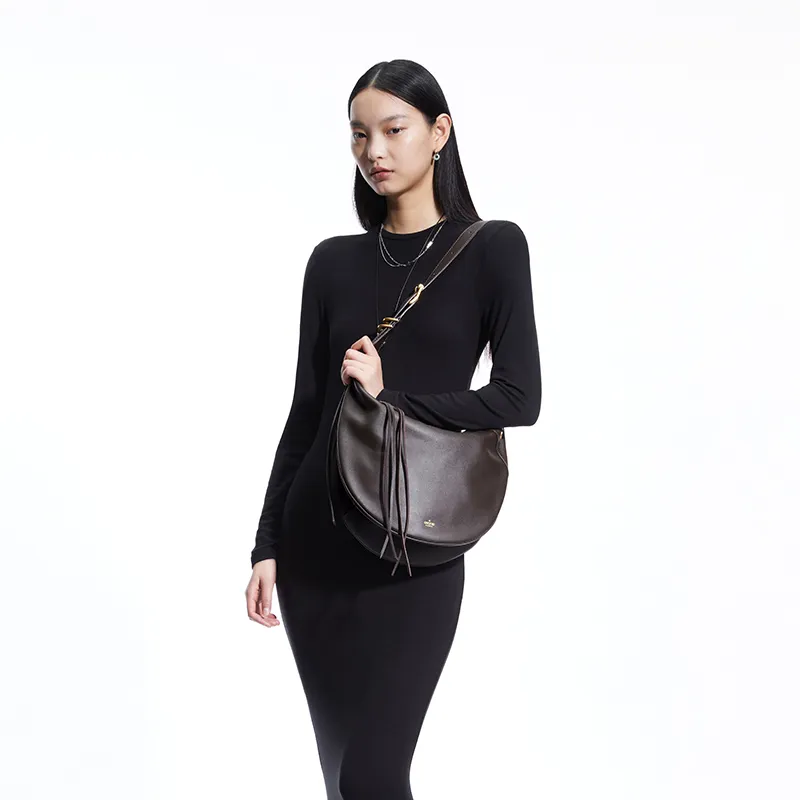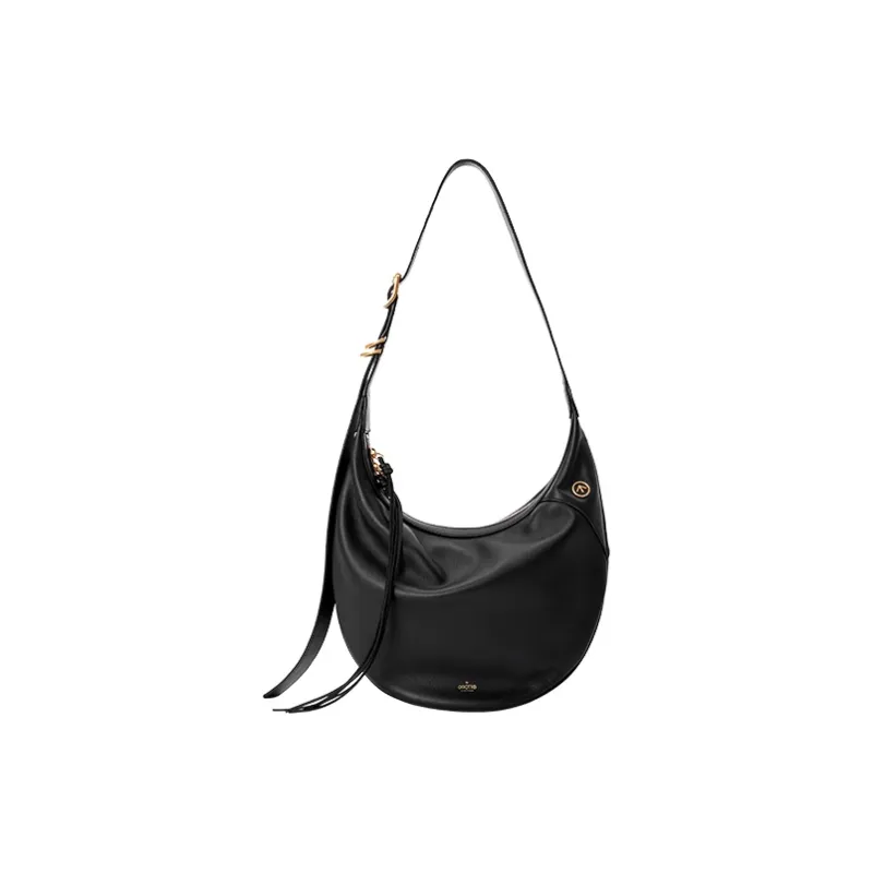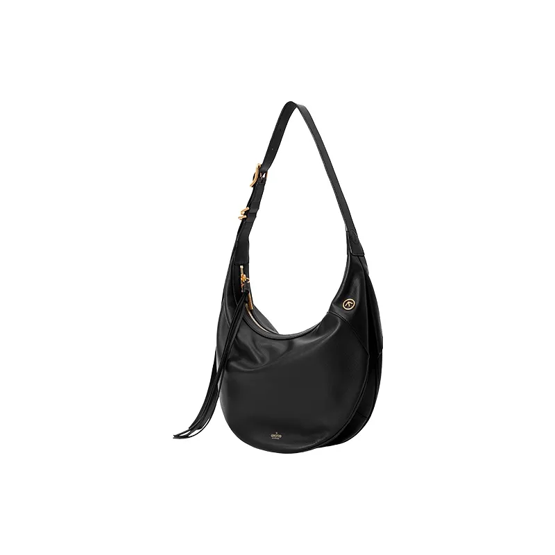 그로토 크러쉬드 송아지 가죽, 섬세한 텍스처 숄더백 M 여성 클래식 블랙/클래식 브라운 - POIZON
