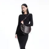 그로토 크러쉬드 송아지 가죽, 섬세한 텍스처 숄더백 M 여성 클래식 블랙/클래식 브라운