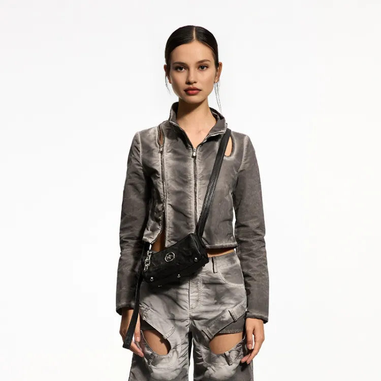 그로토 양가죽 크로스백, 숄더 백 미니 남녀공용 블랙 옵시디언 - POIZON