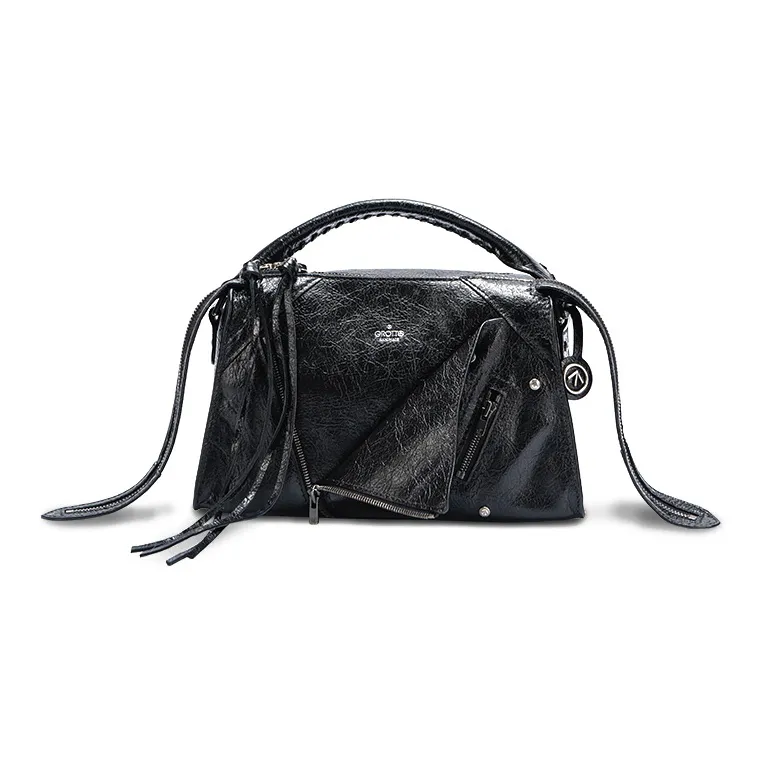 그로토 양가죽 테일러드 카라 가방, 숄더백 핸드백 미니 남녀공용 블랙 - POIZON