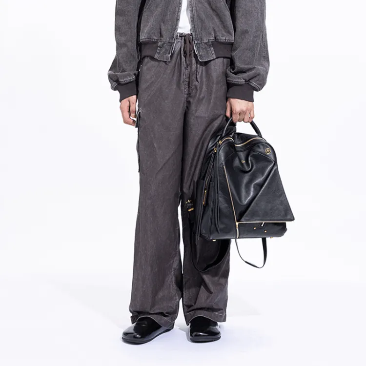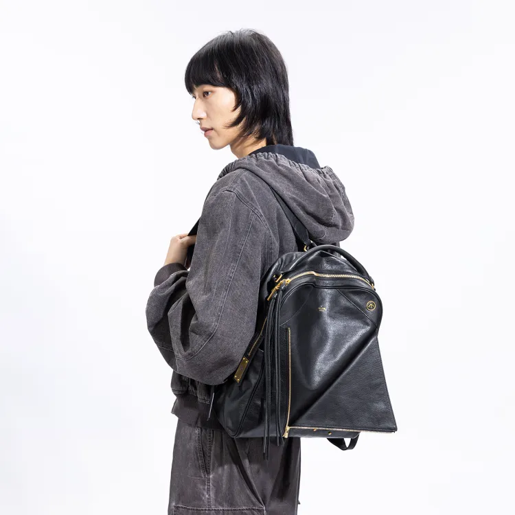 그로토 베지터블 탠드 소가죽 백팩 레귤러 남녀공용 클래식 블랙, 다크 초콜릿 브라운 - POIZON