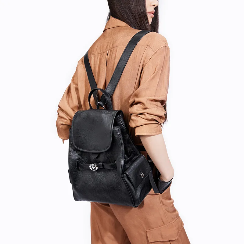 그로토 워시드 베지터블 탠드 소가죽 백팩 남녀공용 클래식 블랙, 블랙 초콜릿 브라운, 카라멜 브라운 - POIZON