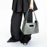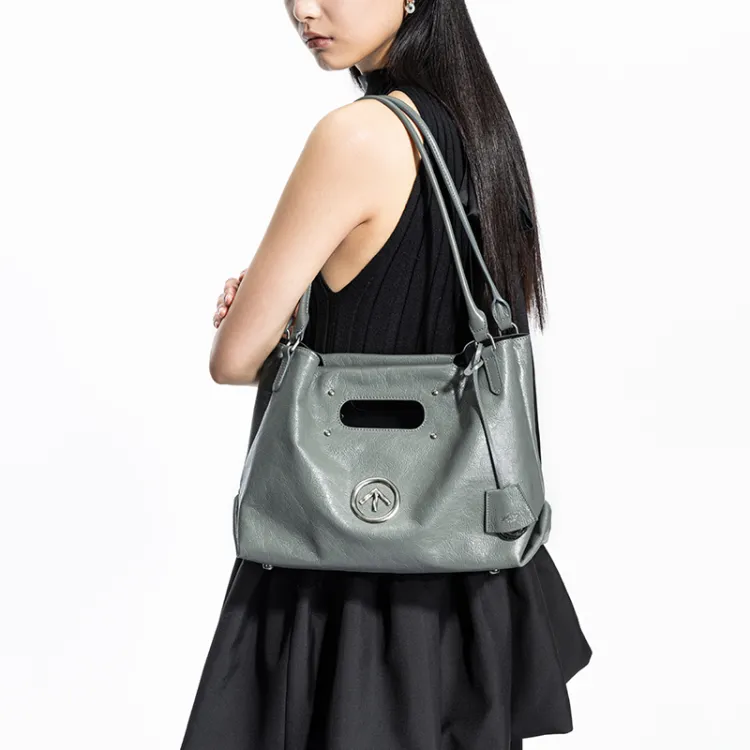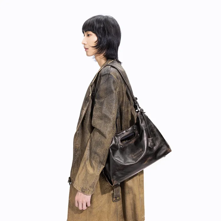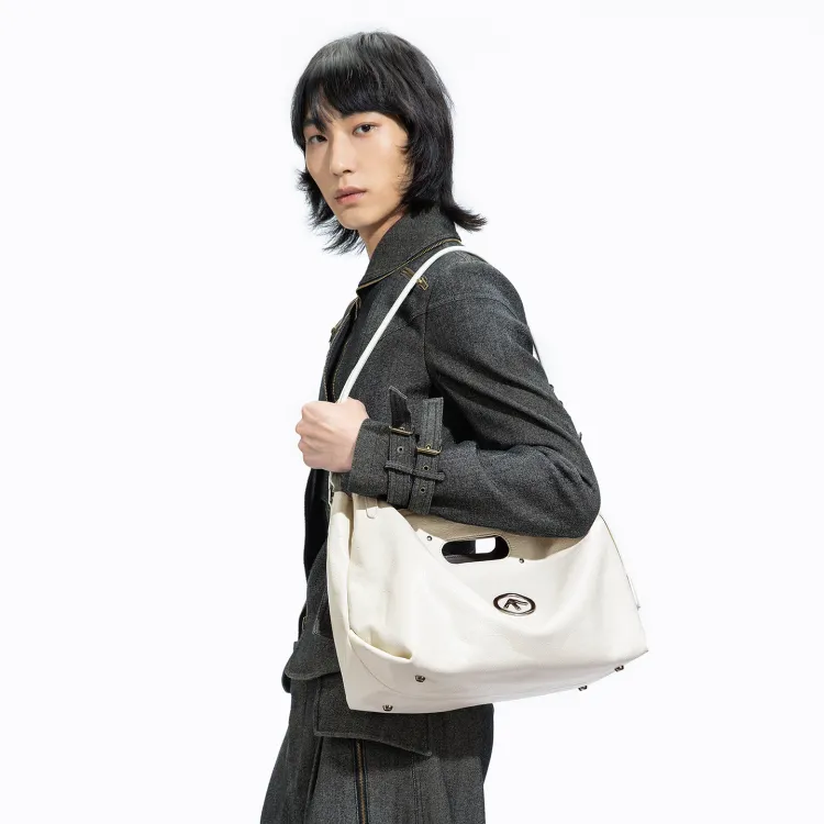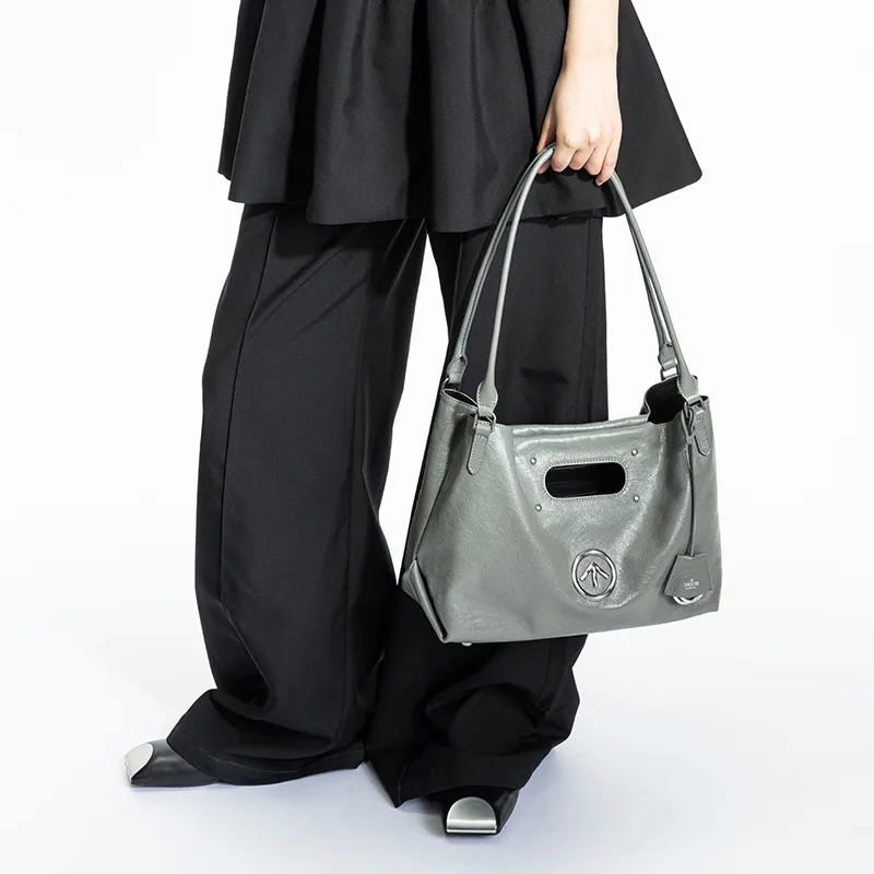 그로토 주름진 소가죽 토트 숄더 백 레귤러 남녀공용 배색 - POIZON