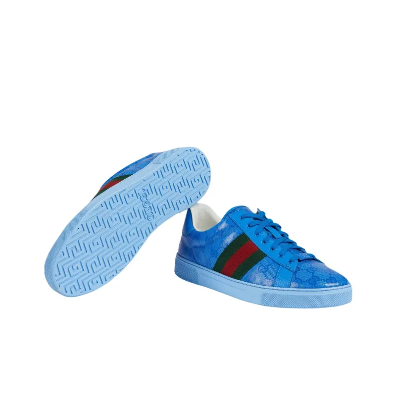 구찌 Ace 스케이트보드화 로우탑 블루 남성 - POIZON