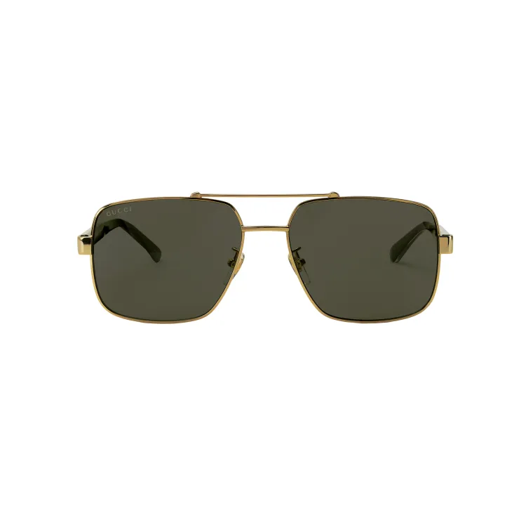 구찌 플레이트 및 금속 브라우라인 선글라스 남성 블랙 골드 - POIZON