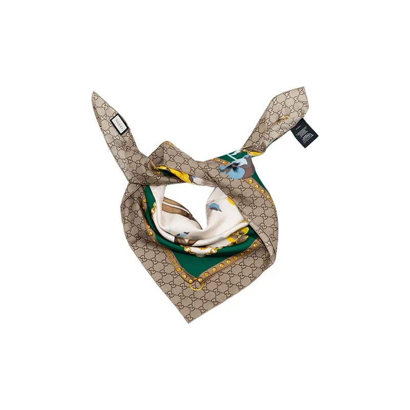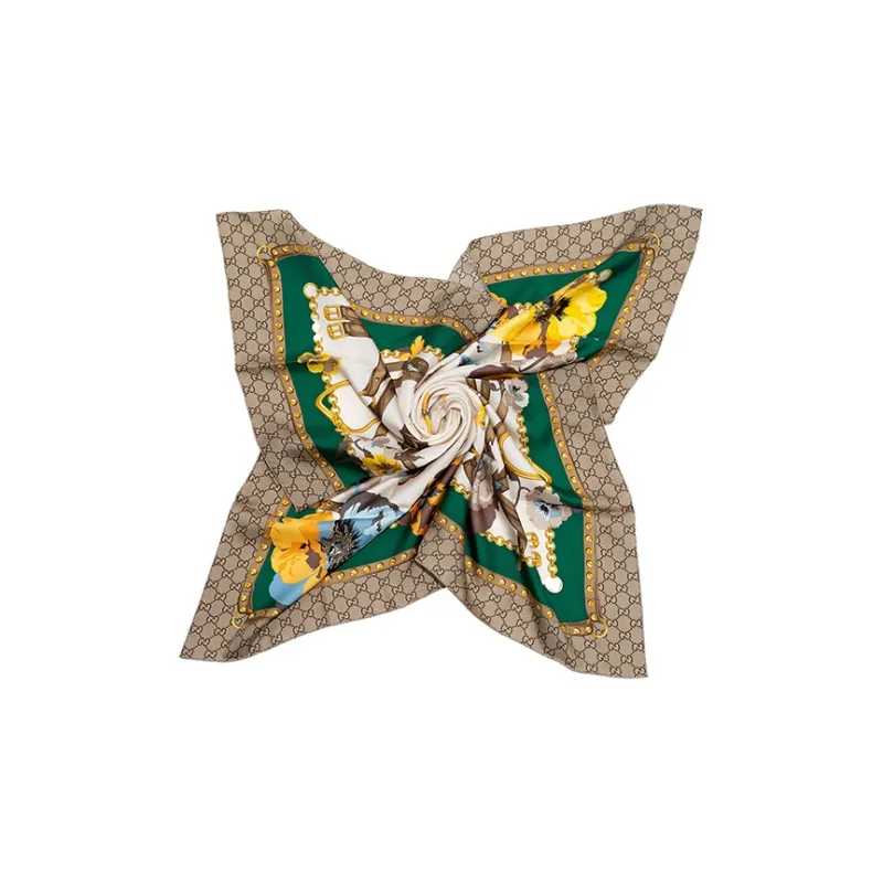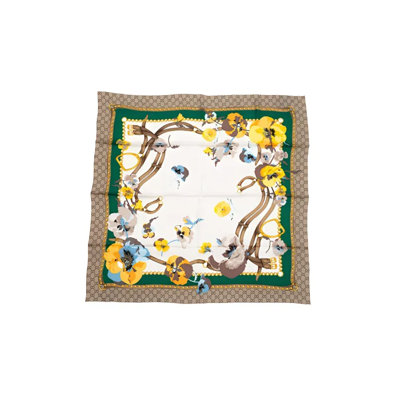 (W) 구찌 플라워 프린트 실크 스카프 그린 - POIZON