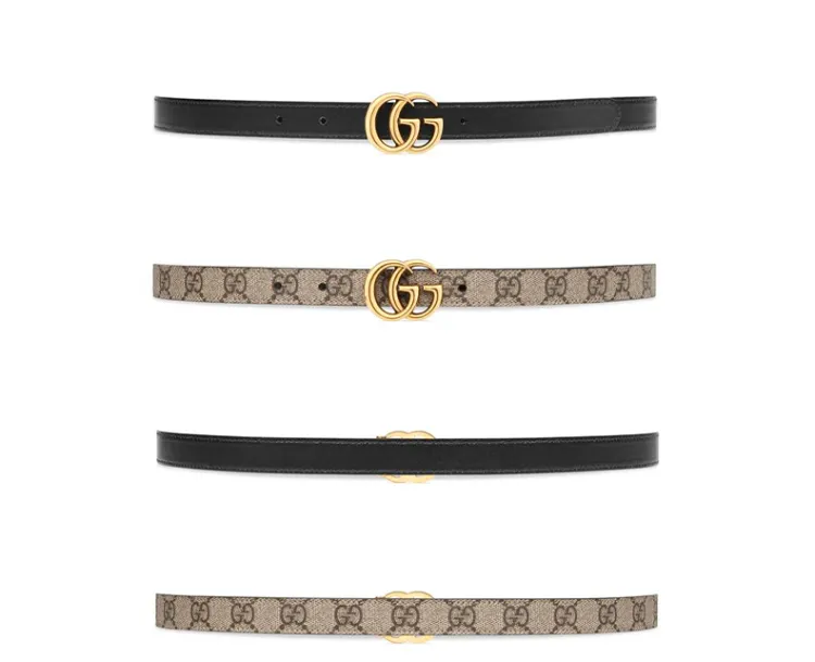 (W) 구찌 Gg 마몽 리버시블 씬 벨트 베이지 에보니 블랙 - POIZON